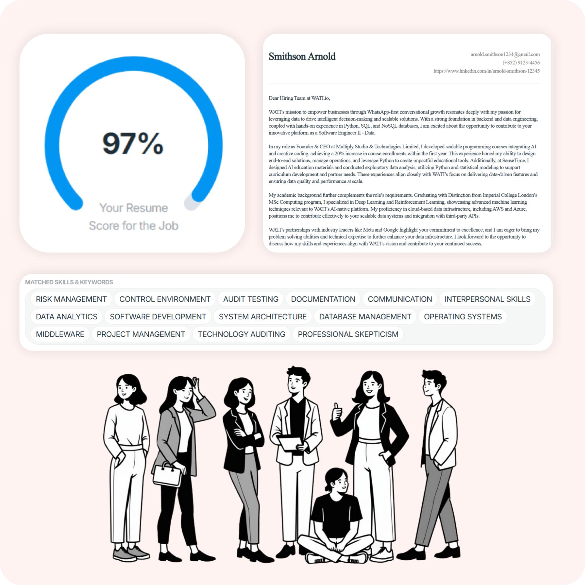 FirstResume is the most intelligent AI in the market that automates every step of your application while giving you personalised insights to maximise your chances with minimal effort.